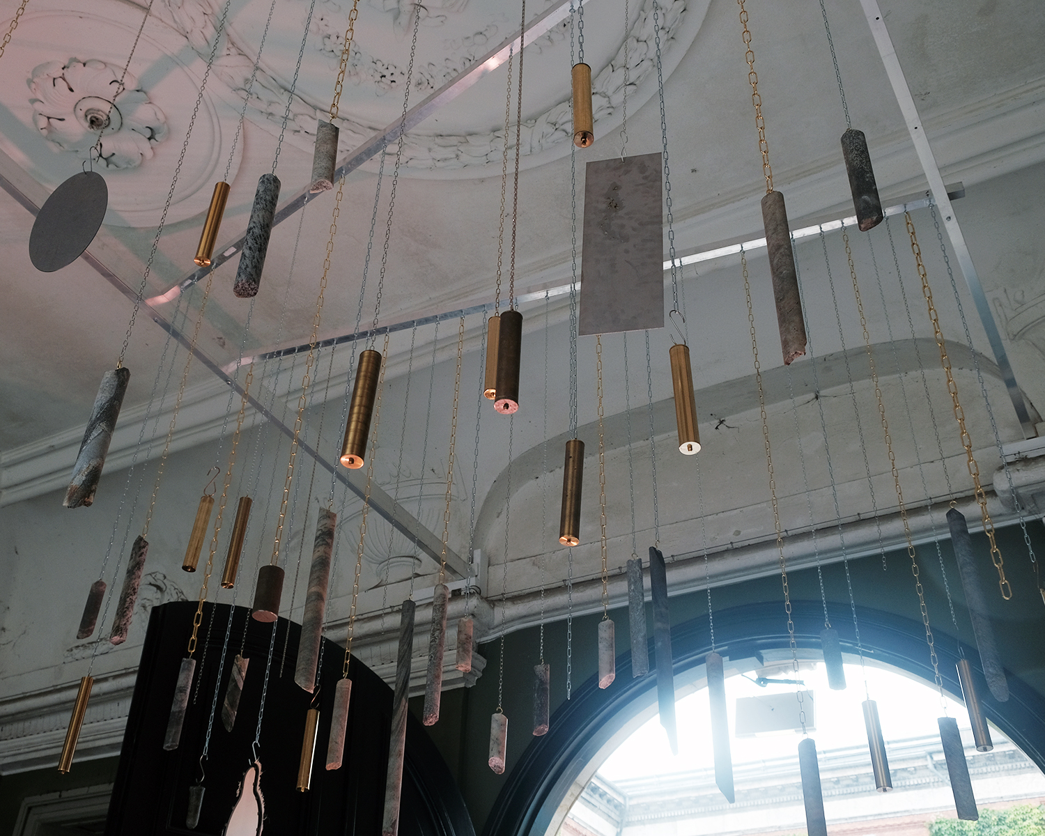 Kalsmose explores connectedness to ourselves, to each other and to cosmos. She combines branches of science such as geology and astronomy with spirituality and subjective perspectives. With Weight of Memories, we are confronted with something that intersects different time divisions – geologically with the iron cores and culturally with the brass pendulums. The work reveals how the past is not gone but embedded — a resonance that remains.