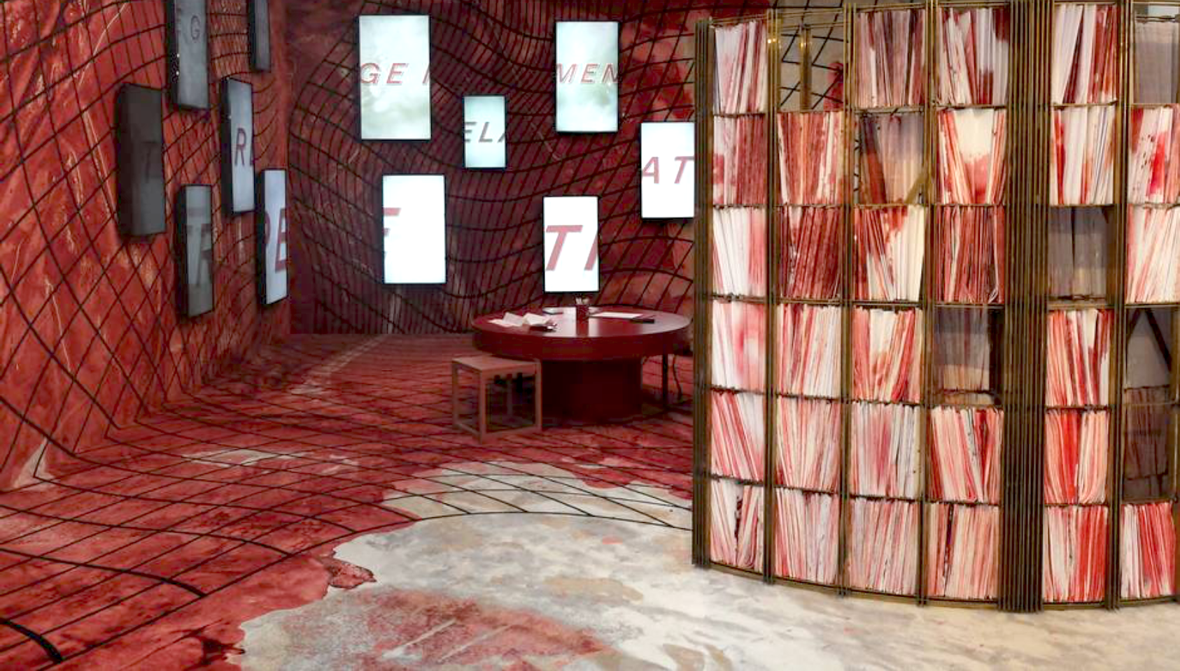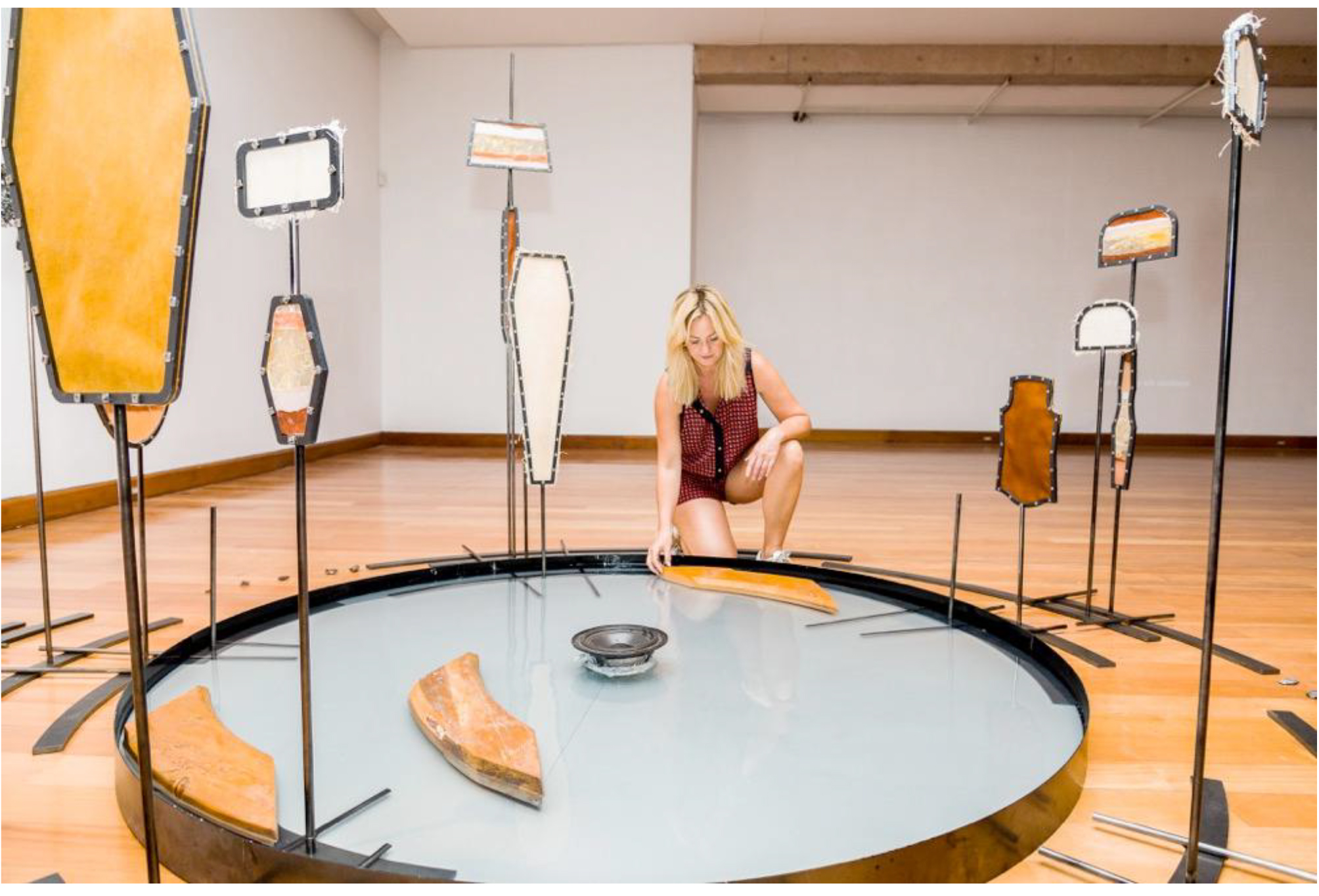Place of Memory is a performance created in connection with the artwork Conscious Matter, which is part of the Arte Povera – A New Chapter exhibition. Conscious Matter installation examines human life as part of the cosmos through the chemical element of iron. Iron appears in the work in various forms as powder, iron ore and blood, highlighting its presence in the human body and the universe.
