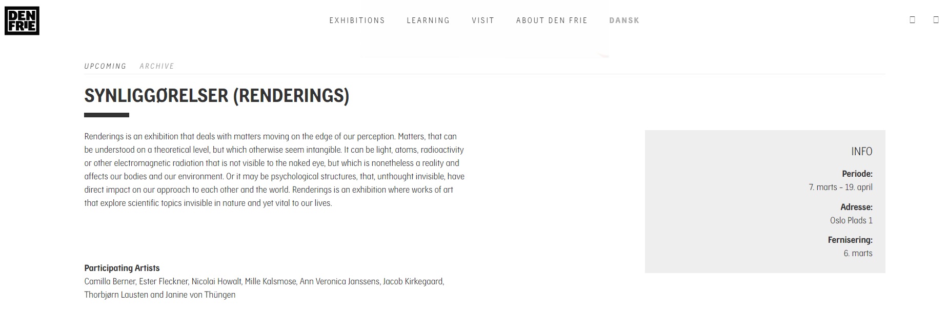 Exhibitions: SYNLIGGØRELSER (RENDERINGS) is still up