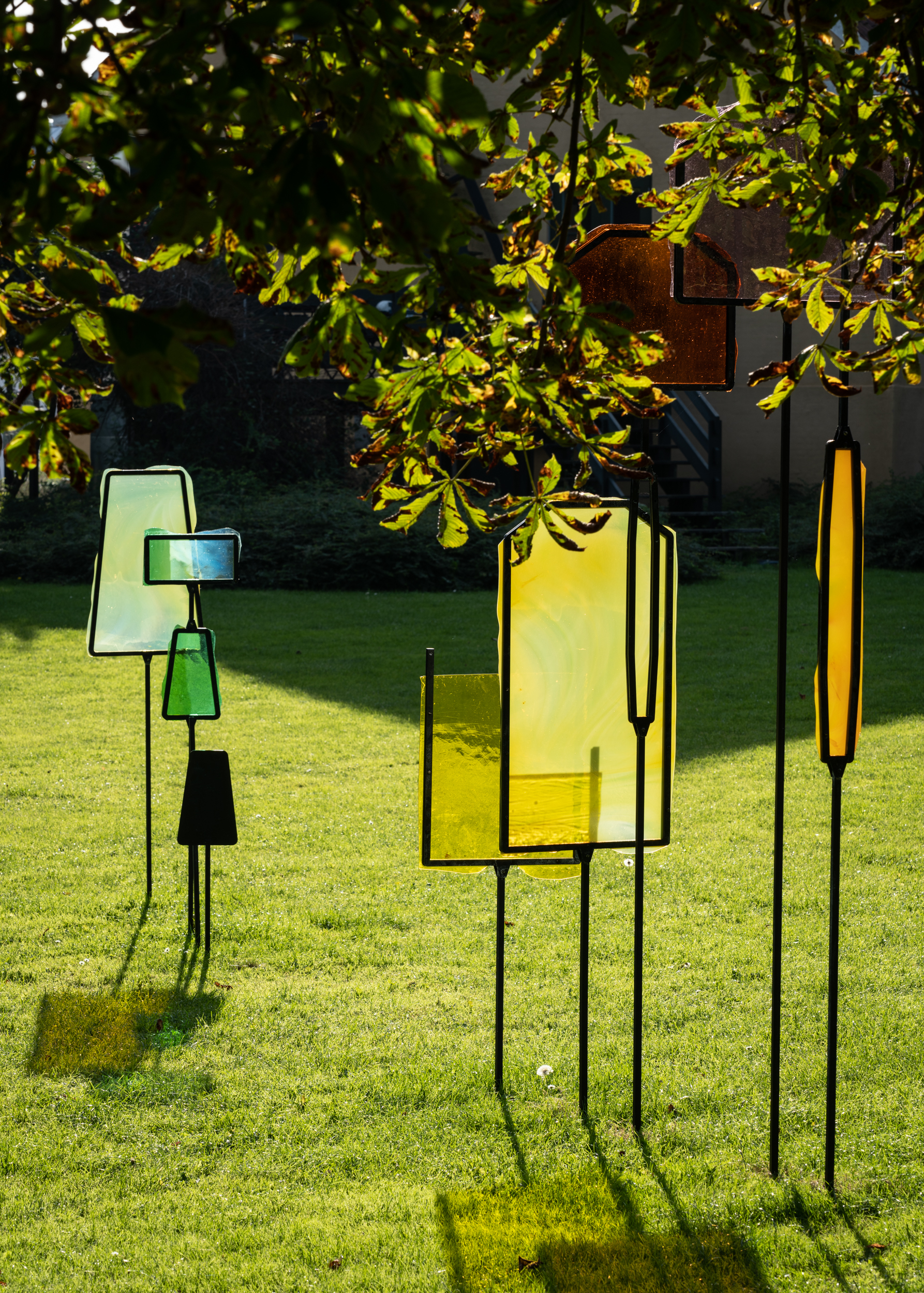 "...Også Mille Kalsmoses Collected Family lader i en koncentreret objektform de rå materialer illustrere menneskelige tilstande. Her med et mere enkelt, elegant udtryk, hvor farvede glasplader lader sol og vind spille ind i værkets figurer. Der er et ekko af moderne mestre som Giacometti eller Lynn Chadwick over disse stiliserede figurer, der snildt ville kunne spadsere ind i en skulpturpark som Louisianas."