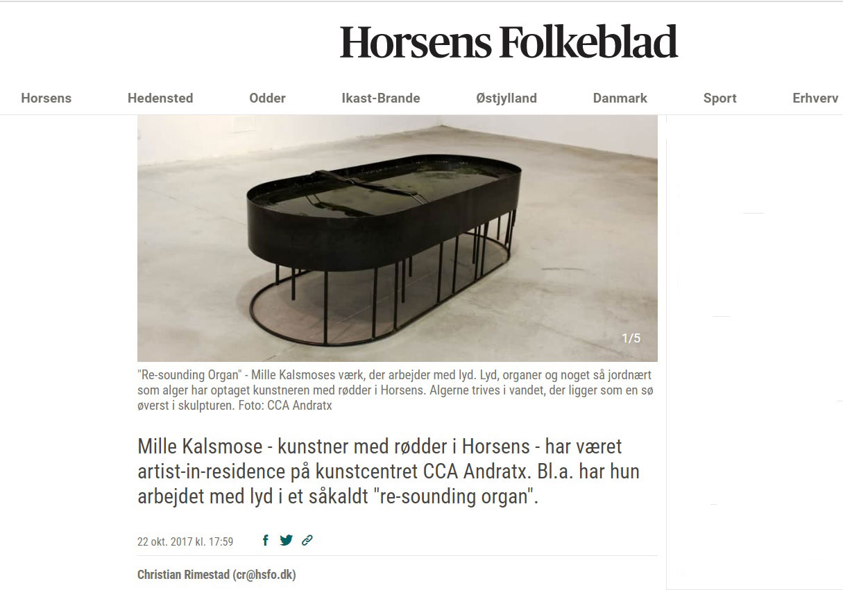 “Re-Sounding Organs” by Mille Kalsmose in Horsens Folkeblad