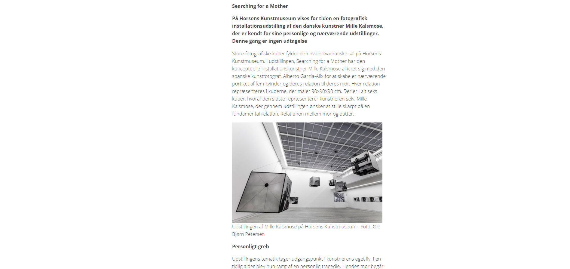 Interview with Mille Kalsmose in ‘Magasinet Kunst’