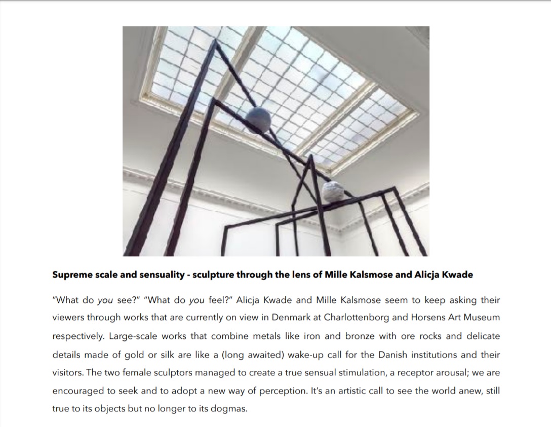 Scale meets sensuality: Mille Kalsmose and Alicja Kwade on IDOART.DK (Danish)