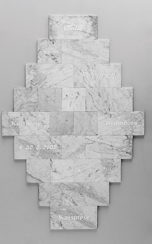 The ongoing project, All My Suicides, which has so far resulted in both a Part One, Two and Three consists of Kalsmose’s five official name changes – from the name, ”Henriette Olesen”, she was christened through several variations until she reached her present name, ”Mille Kalsmose-Hjelmborg”, in 2008.