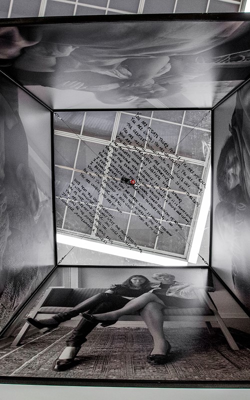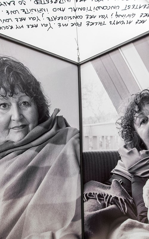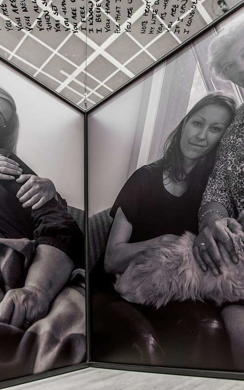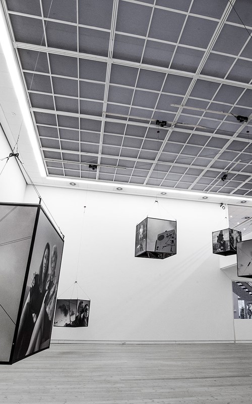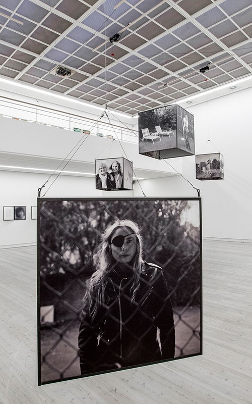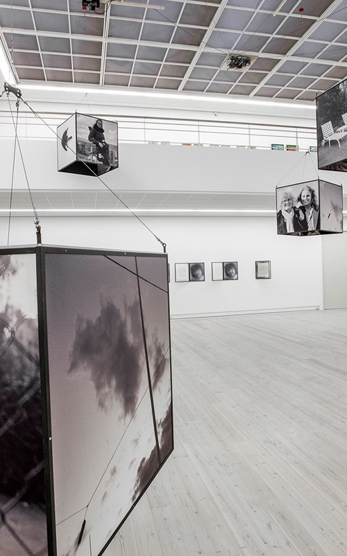 Mille Kalsmose asks herself whether this mother-daughter bonding can be “copied”. The photos document that apparently it can. But the photos of the artist and her “mother” may also be a performative act, a doing of the real and a representation of the real at one and the same time. They are photos, which are and do in the same movement. They call attention to the fact that performativity involves repetition and citationality and, hence, how performative agency is connected to conformity. In the words of Erving Goffman, social communication is understood as the repetition of routines selected and re-used by each individual in different situation. The photographs make aware how none of the installation’s mother-daughter situations are more authentic than the others and how mediation is always a kind of performance. According to Goffman, what is real is what is convincingly acted as real. By means of the large photographs of close-up of faces, of seemingly spontaneous interactions and more tableau-like poses which the viewers are invited to linger on and scrutinize, even become part of, we are given a feeling of privileged access to intimate situations. But simultaneously, the projected impression of authenticity and sincerity is based upon the repetition of a historically determined agreement on the kinds of performance that may pass as authentic. I think that Mille Kalsmose-Hjelmborg’s “Searching for a Mother” strongly advocates for identity as a relational matter. Moreover, the scale of the cubes and their invitation to immersion but also to contemplate the whole installation at a distance point to the interaction with the work as identity-work. Even though the viewers might not be searching for a mother, they may indulge in the project’s investigation of the social and artistic construction of mothers and daughters. By posing a question so basic, so seemingly non-questionable or naïve and yet very radical, Mille Kalsmose opens up an enormous field of invisible layers in our relationships – not just with our mothers but regarding the nature of relationships as such and bringing it to an existential level.